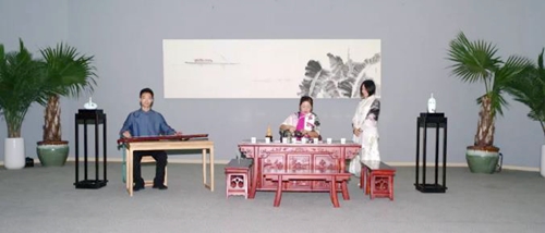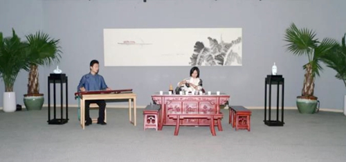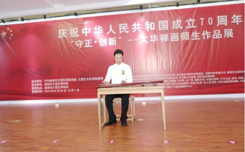 8月26日下午,张大华老师的弟子与文登本地艺术家在展览现场给大家带来了一场精彩的古琴、茶道表演。