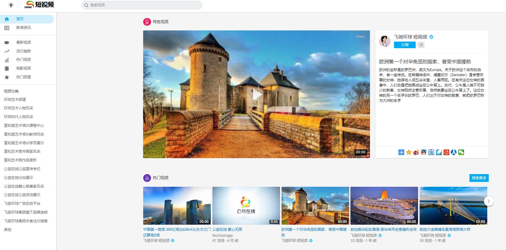 飞驰环球短视频平台是跨平台的、开放的新媒体短视频平台。通过灵活而广泛的合作与收益分享体系,越来越多的优质短视频内容通过飞驰环球短视频平台的渠道获得更大影响力;独特的结构设计可为用户带来愉悦的使用体验,凡是符合国家法律、法规的短视频作品,均可免费上传,快速的审核流程,让您的作品迅速登录网站,实现“飞驰”的网络传播。