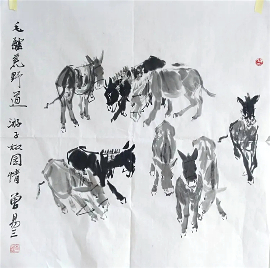 当代画驴名家:曾易三,(原名曾耀明)早年入伍,曾在兰州军区某集团军及陕西省军区宣传部门工作。后转业到宝鸡卷烟厂从事宣传工作。