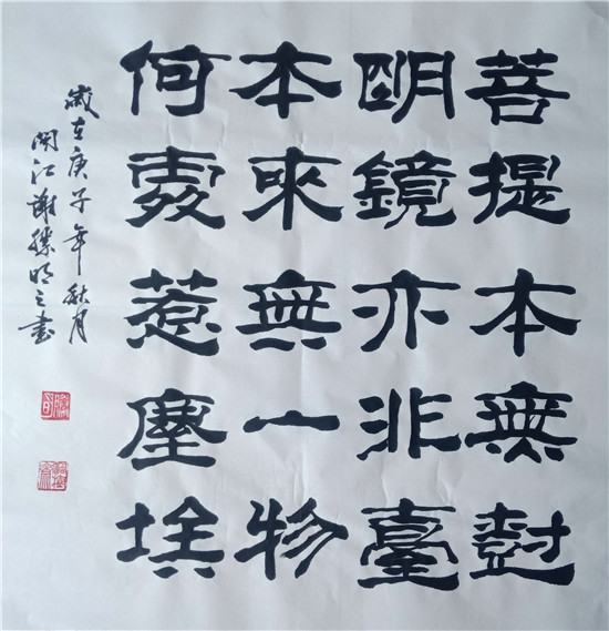 谢国芦;字:永华, 书名:谢胜明;法号:释传神。1972年10月生,福建省建宁县人,自幼爱好书法,天资聪颖,生性好学,笔耕不辍,日出而作,日落而息,“走进梨园是果民,执起毛笔是墨客”,笔耕不辍,数十年躬耕艺海,以艺会友,在书画艺术的道路上开拓进取。在闽江青山丽水秀色赋予了艺术灵气和天赋,心痴情醉,酷爱弥深,体会墨香趣味,由于多年对文字颇有兴趣研究,临摹古帖并打下了坚实的基础。苦心钻研书法艺术,运笔之道融为一体,使笔下的字刚柔相济,神丰骨劲,章法美观,韵味无穷。取法于书法的正脉,诸如二王、宋四家、王铎、钟繇、苏试、董其昌、米芾等名家的字体,临习日久,深得前人笔意。除此之外,今生以佛有缘,善根具足,保持平常之心,清净之心,精进之心,永恒之心,以书会友,以法布施,有法无法自取法,道法自然的思想方向。体现出生活现实的书法生涯艺术。以大家最喜爱的形式走进人们的生活中,正是这样雅俗共赏的精品与大家共享情操乐趣,近年来,一如继往,不激不厉,静心精进,而且对自己的作品要求更加严谨,执著传承进行自我超越,精艺求精,与时俱进。