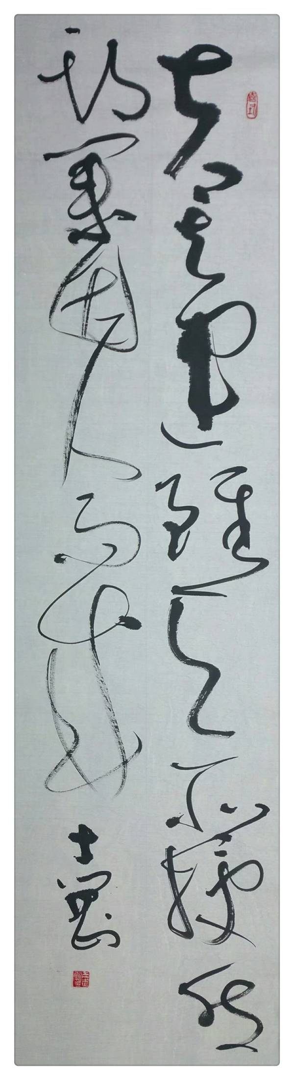 王志刚,男,字路雯,号平山草堂,河南鲁山人,自幼酷爱书法,首先从魏碑入手,后专注怀素大草,以秀为基调,以雅为崇尚,以美为追求,努力锤炼高质量线条,进修于中国书法家协会培训中心,师从胡崇炜、李明、张胜伟、孙文佳等导师。