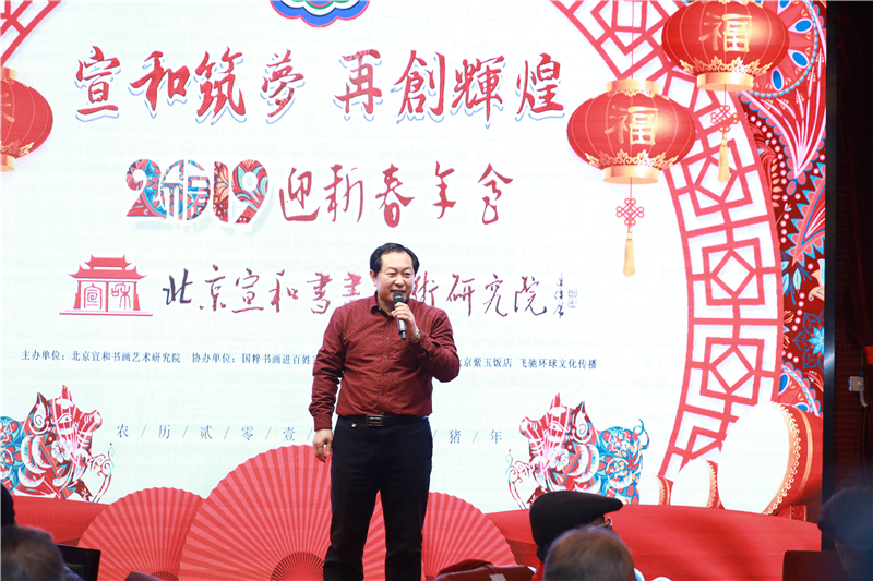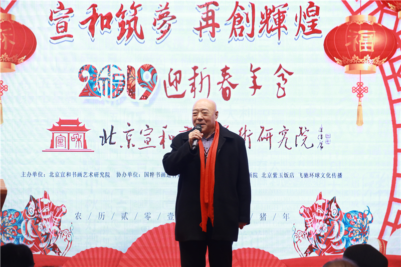 环球文化艺术网(记者:冯永军 摄影:刘世超 )“翰墨飘香弘国粹、丹青焕彩咏华章”。2019年1月10日下午,由北京宣和书画艺术研究院主办;国粹进百姓家俱乐部、正举沈鹏书画院、北京紫玉饭店协办;乳山市凤凰山茶业有限公司、怀来云腾(原浆)酒业、怀来红生商贸有限公司赞助支持的北京宣和书画艺术研究院2019“迎新春·庆年会”活动在北京紫玉饭店隆重举行。