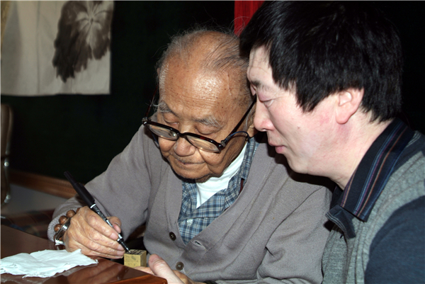 著名国画家娄师白先生指导弟子翟玉龙篆刻示范
